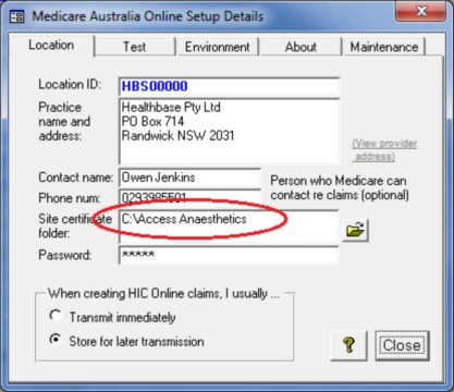 Copy the hic.psi file from the old installation to the new, putting it into the Access Anaesthetics folder. This contains the Medicare PKI location certificate. If you do this, you won't need to reinstall the certificate from the Medicare CD.
